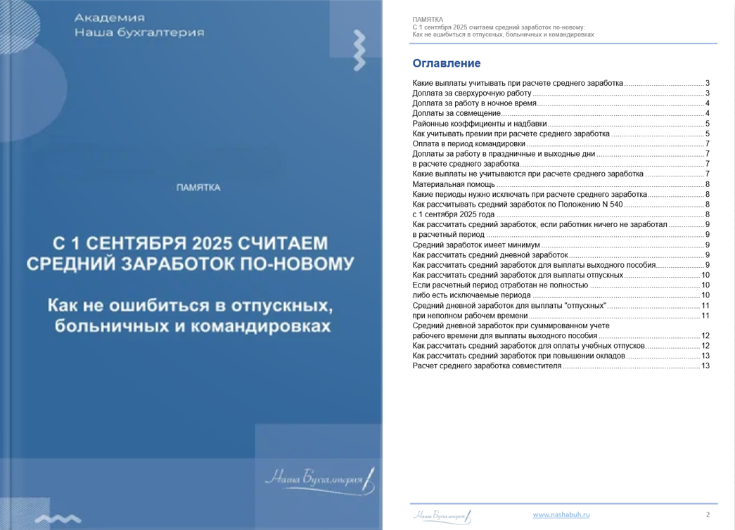 "Памятка по новому расчету среднего заработка с 1 сентября 2025 года"